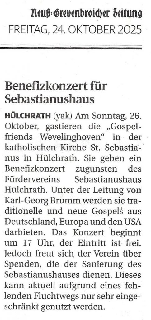 | 26.10.2025 | 17:00 Uhr Benefizkonzert | Kirche Hülchrath |